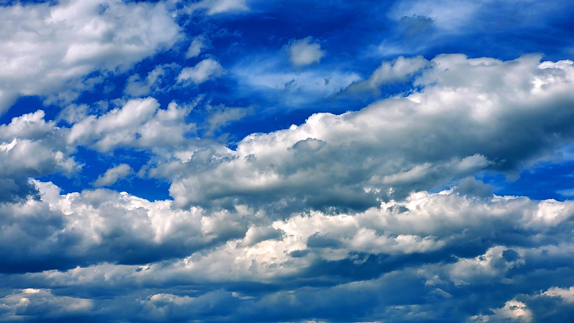 I see fluffy soft white and gray clouds