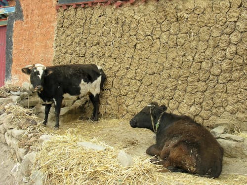 పిడకలు (pidakalu) are cow dung cakes used as fuel in villages in India. I grew up in villages watching women and men mix cow or buffalo dung with small pieces of dried hay and twigs to make round patties. Once the patties were made they would slap them against a wall for drying. Villagers use them as fuel for cooking. Cow dung patties are considered sacred and used in Hindu ceremonies as fuel to light fire.