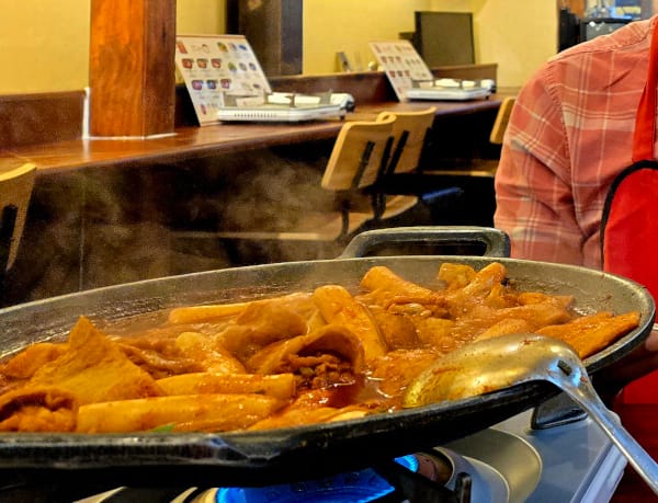 I don’t like to decide where we are eating ahead of time when we are traveling. I like to walk around to find a restaurant. My better half wants to have a plan ahead and set a route to the restaurant. Sometimes we decide ahead of time, on other occasions we walk around to find a place. Walking around can be tricky. Especially when we are hungry everything looks good and there are so many places to choose from. On our recent trip to Seoul, we started walking around Ikseon-Dong Hanok village. This area is full of restaurants housed in Korean style houses. We were very hungry searching for a place to eat. We kept walking by one restaurant after another not being able to decide which one to choose from. The ones I liked didn’t pass muster with my younger one. The ones he liked didn’t look appealing to me. My better half was trying hard to keep his cool as he kept walking with us as we aimlessly looped back to the same streets we checked out. At last we agreed on a Tteokbokki restaurant. We cooked our Tteokbokki on a stove on our table as that’s how it's done at Korean restaurants and thoroughly enjoyed the experience and the food.